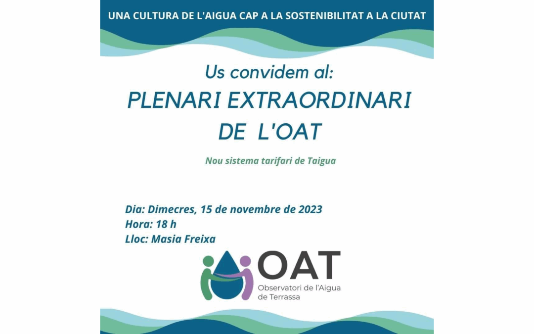 Os invitamos al Plenario Extraordinario de OAT: Nuevo sistema tarifario de Taigua